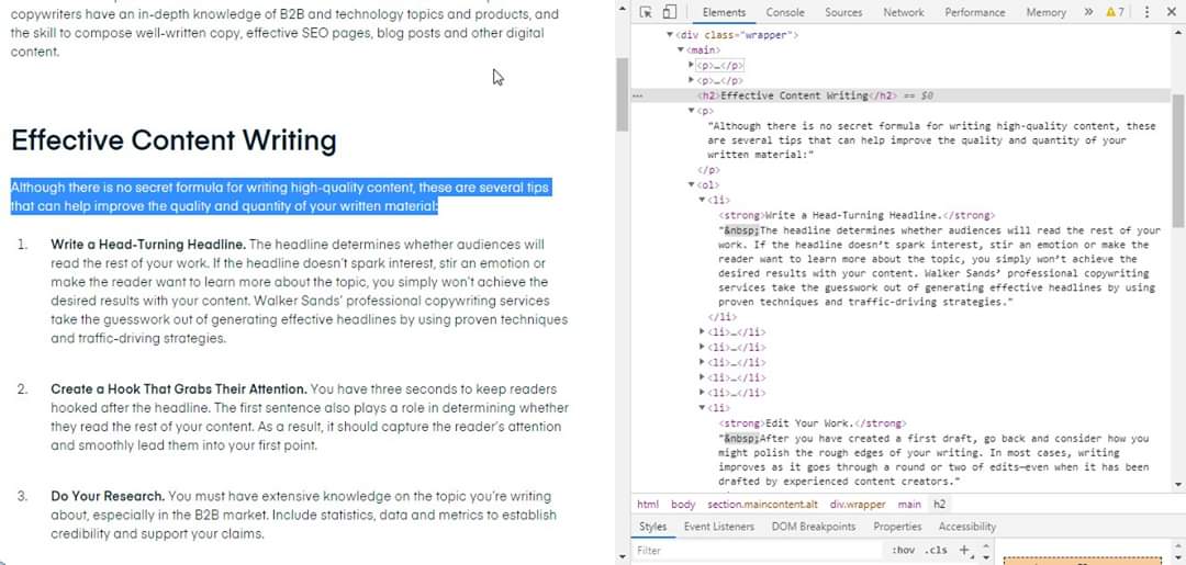 4. Đọc đến thẻ <h2> nó sẽ đánh dấu dữ liệu này là tiêu đề của phần nội dung ngay sau thẻ <h2> này và phần nội dung này sẽ được đánh dấu dữ liệu tiếp tuỳ vào thẻ sẽ được sử dụng cho từng loại nội dung.